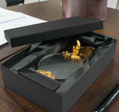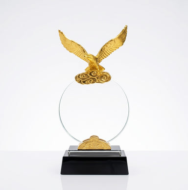 Celebrate success and achievement with this elegant Golden Eagle Crystal Trophy Award. Designed with a majestic gold eagle spreading its wings abov...