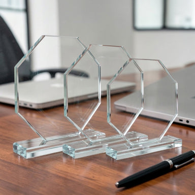 Celebrate excellence with this Customized Octagon Shape Crystal Award, a premium trophy designed to honor achievements with elegance and style. Cra...